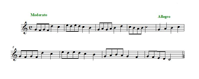 Aire Se llama aire a la velocidad a la que se debe ejecutar una obra musical. El grado de lentitud o rapidez se indica por medio de términos generalmente en italiano que se colocan en la parte superior del pentagrama, al principio de la obra o cuando hay un cambio de aire. Ejemplo: Escuchar |