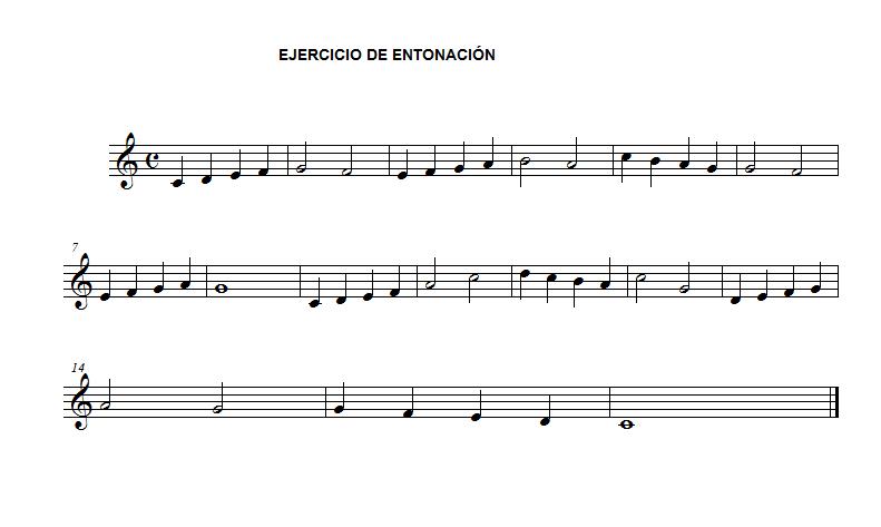 Entonación Es la interpretación de los sonidos con una afinación precisa, dando a cada nota su altura, para ello hace falta escuchar las notas e imitarlas. En el siguiente ejemplo escucharemos la escala de Do para familiarizarnos con el sonido de cada nota. Para escuchar pinche aquí. |