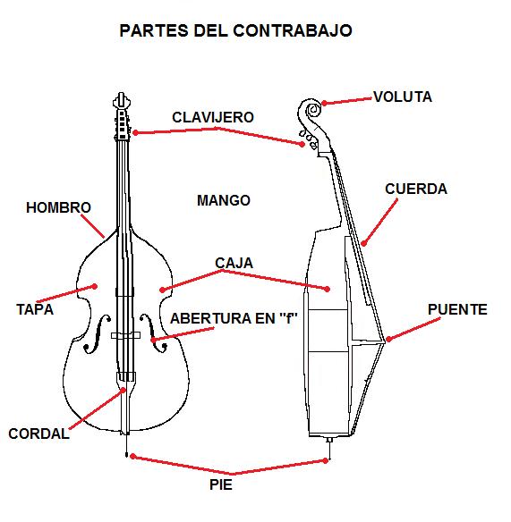 contrabajo actual tiene cuatro cuerdas como el violín, y el